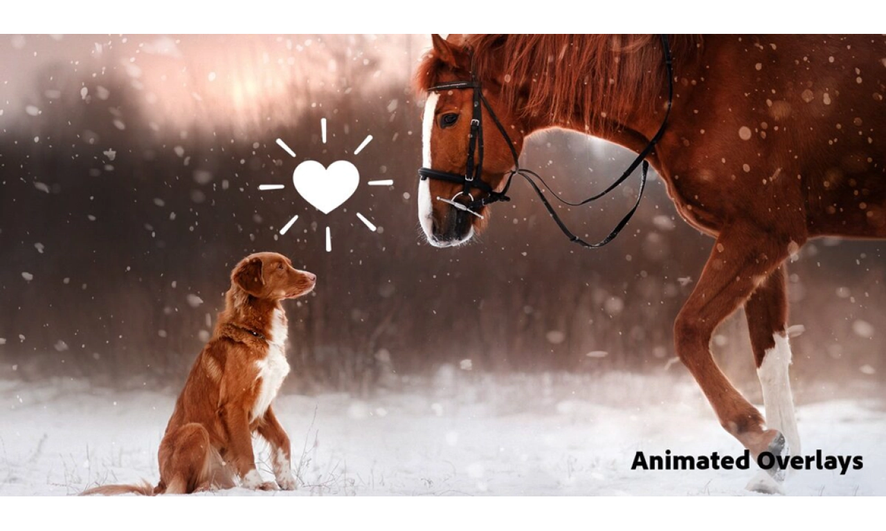 With just one click, add a sense of camera motion or animate sparks, a blinking heart, or an animated frame.