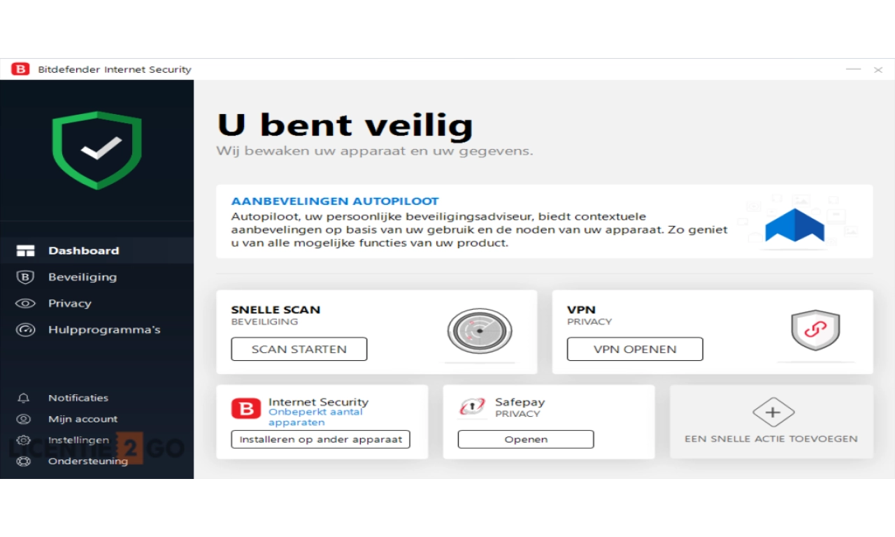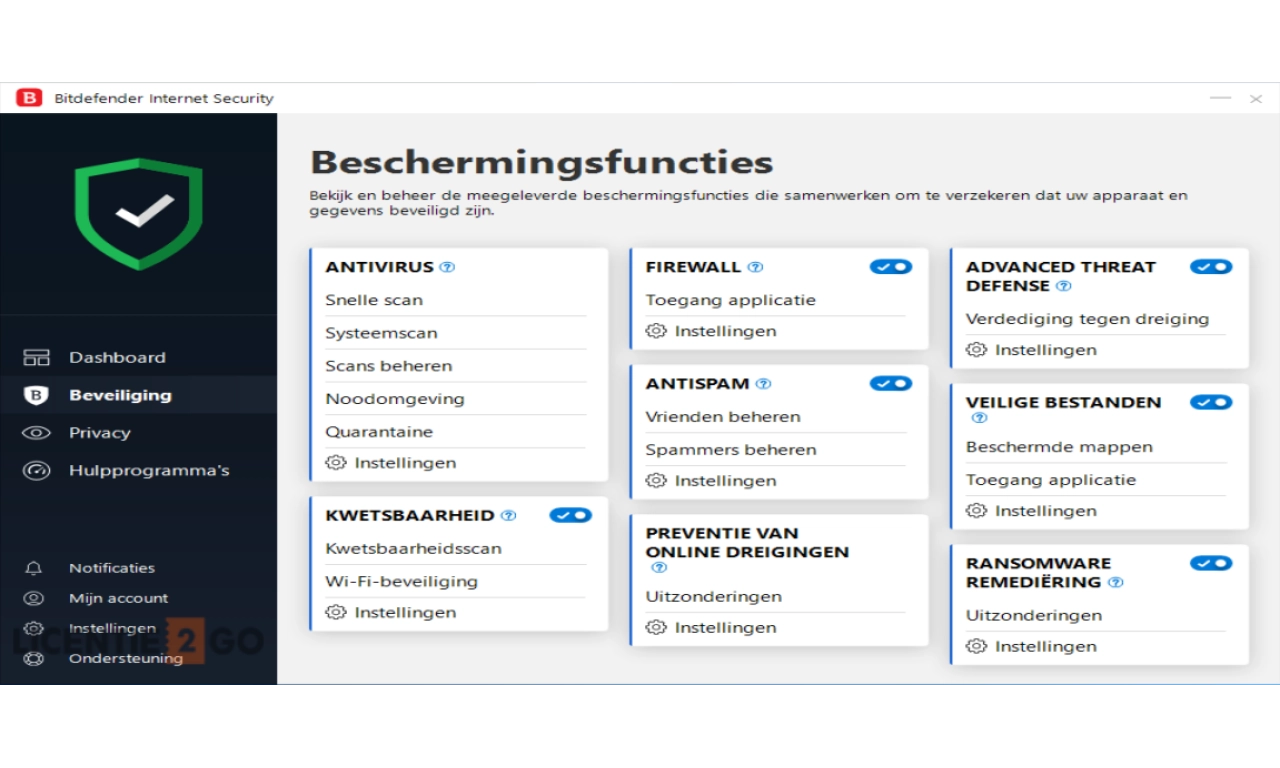 Bitdefender Internet Security 2026 is te downloaden op 10 Windows PC voor de duur van 2 jaar en is beschikbaar in de volgende talen: Nederlands, Engels, Duits en Frans.