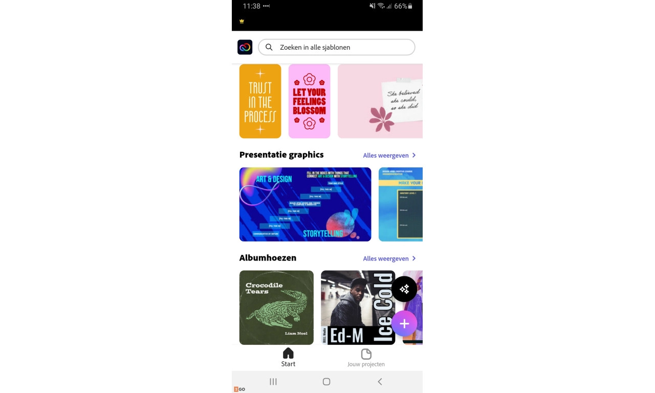 Alle premiumsjablonen en -ontwerpassets, inclusief de volledige verzameling van meer dan 160 miljoen foto's uit de royaltyvrije Adobe Stock-fotocollectie* vanuit de Creative Cloud Express-app.