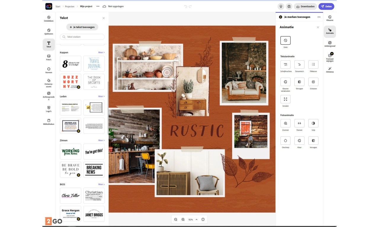 - Voeg je merk, logo, kleuren en lettertypen toe met één tik.