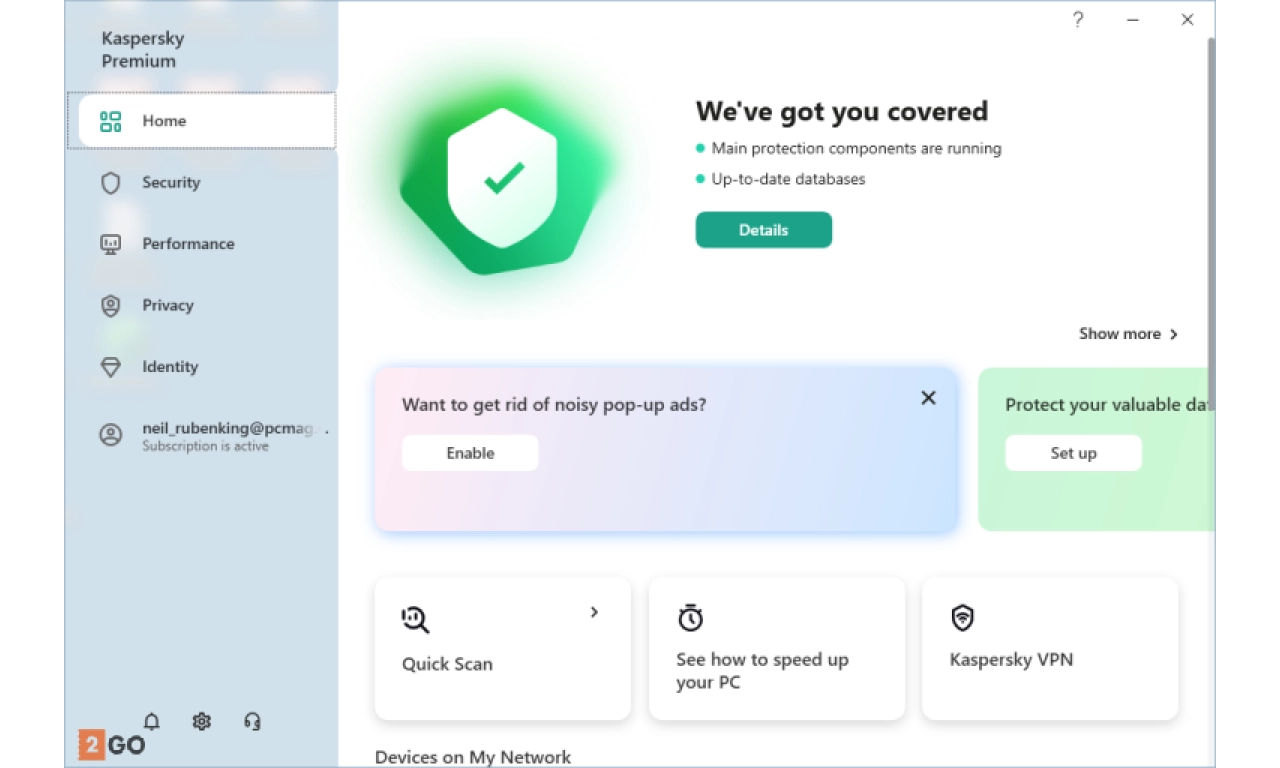 In het kort: Kaspersky Premium voor 3 apparaten is de ideale keuze voor wie op zoek is naar geavanceerde, alles-in-één beveiliging. Je digitale wereld verdient het beste, en Kaspersky levert dat zonder compromissen. Bestel snel en eenvoudig via 2GO Software!