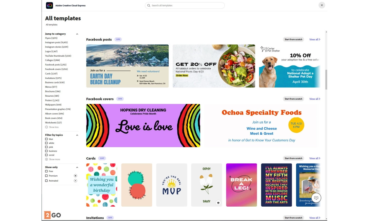 Adobe Express Premium gör det enkelt för dig med tusentals mallar som gör att du snabbt kan komma igång. Organisera mallarna efter kategori eller ämne så att du snabbt hittar det du söker. Du kan anpassa varje mall för att uppfylla dina behov. Mer än 20 000 teckensnitt och grafik finns tillgängliga, och Adobe Express Premium levereras med hjälpsamma förslag så att du kan skapa imponerande mönster på nolltid. Skapa filmer, utformar flygblad, affischer, inlägg i sociala medier och fantastiska presentationer. Gör det på ett ögonblick med Adobe Express.